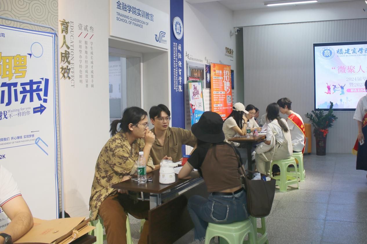 6月18日上午,国际经贸学院、外国语学院在马尾校区联合举办“百日冲刺”促就业行动校园招聘会。