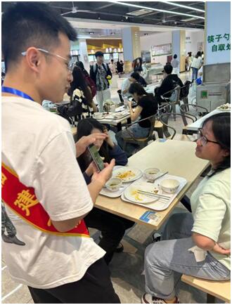 “校膳食委员会”学生在食堂呼吁大家积极开展“光盘行动”,并开展节能知识、垃圾分类等绿色生活方式宣传,号召大家树立节能降碳的意识,从自身做起,由小事着手,形成合力,积极参与到节能减排的行动中,共同创造可持续发展的社会环境。