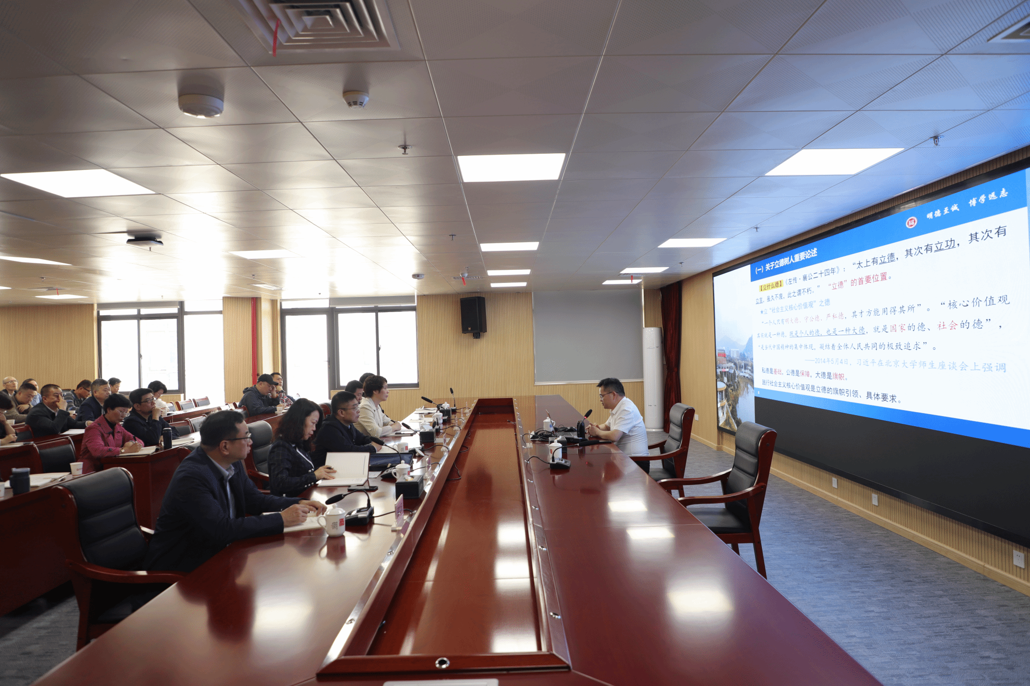 4月28日上午,永利官网在连江校区举行学习贯彻习近平新时代中国特色社会主义思想主题教育读书班第二场专题报告会,应校党委邀请,福州大学马克思主义学院副院长刘有升教授作专题报告。校领导吴访益、程灵、徐晓丹、杨晓翔、蒲文庆、萧罡出席会议。校党委副书记、校党委主题教育领导小组办公室主任徐晓丹主持报告会,全校处级以上干部参加会议。