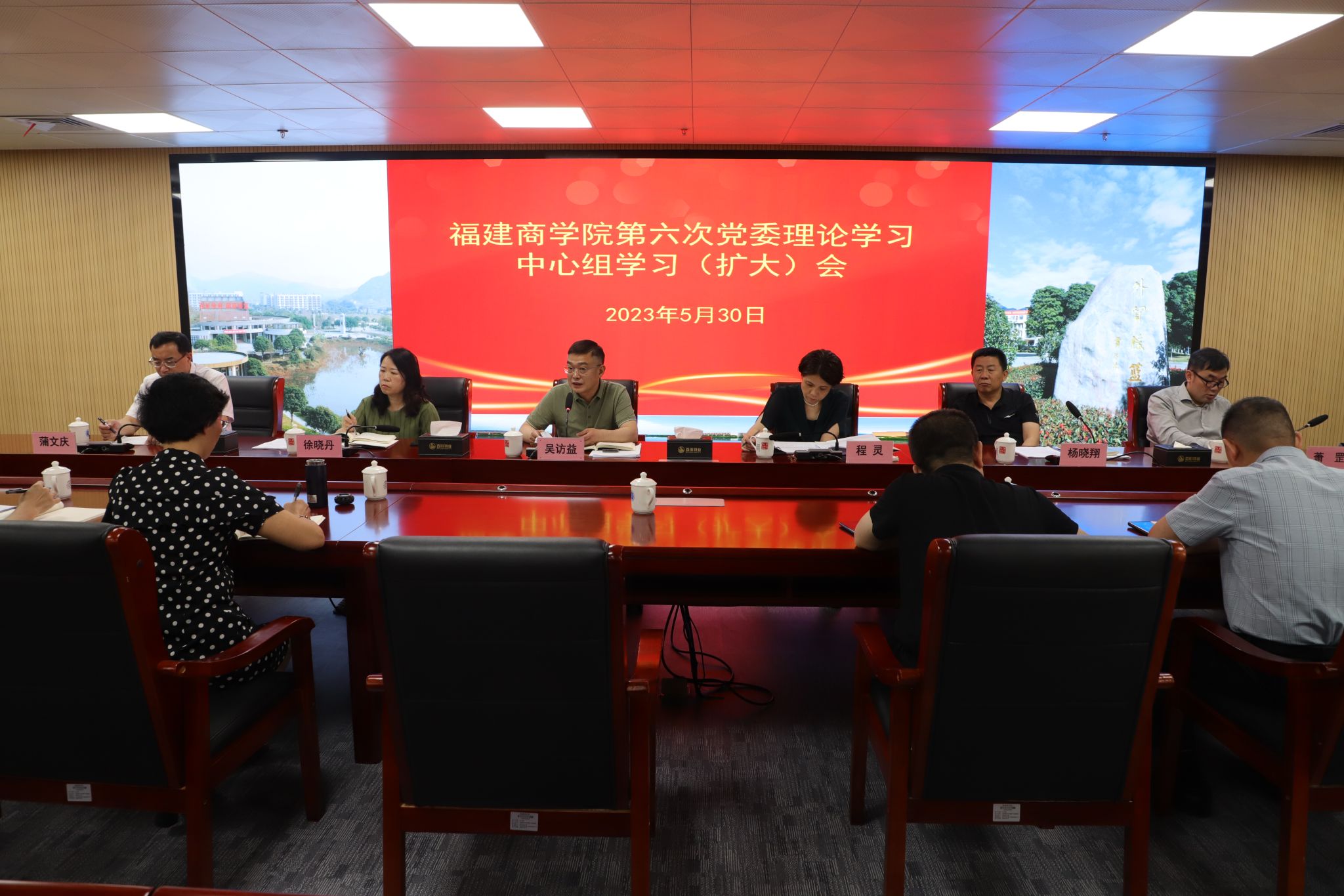 5月30日上午,校党委召开2023年第六次党委理论学习中心组学习(扩大)会,就深入学习习近平总书记关于教育的重要论述进行专题学习研讨。校党委书记吴访益主持会议并讲话,校长程灵作主题发言,徐晓丹、杨晓翔、蒲文庆萧罡作交流发言,学校全体中层干部列席学习会。