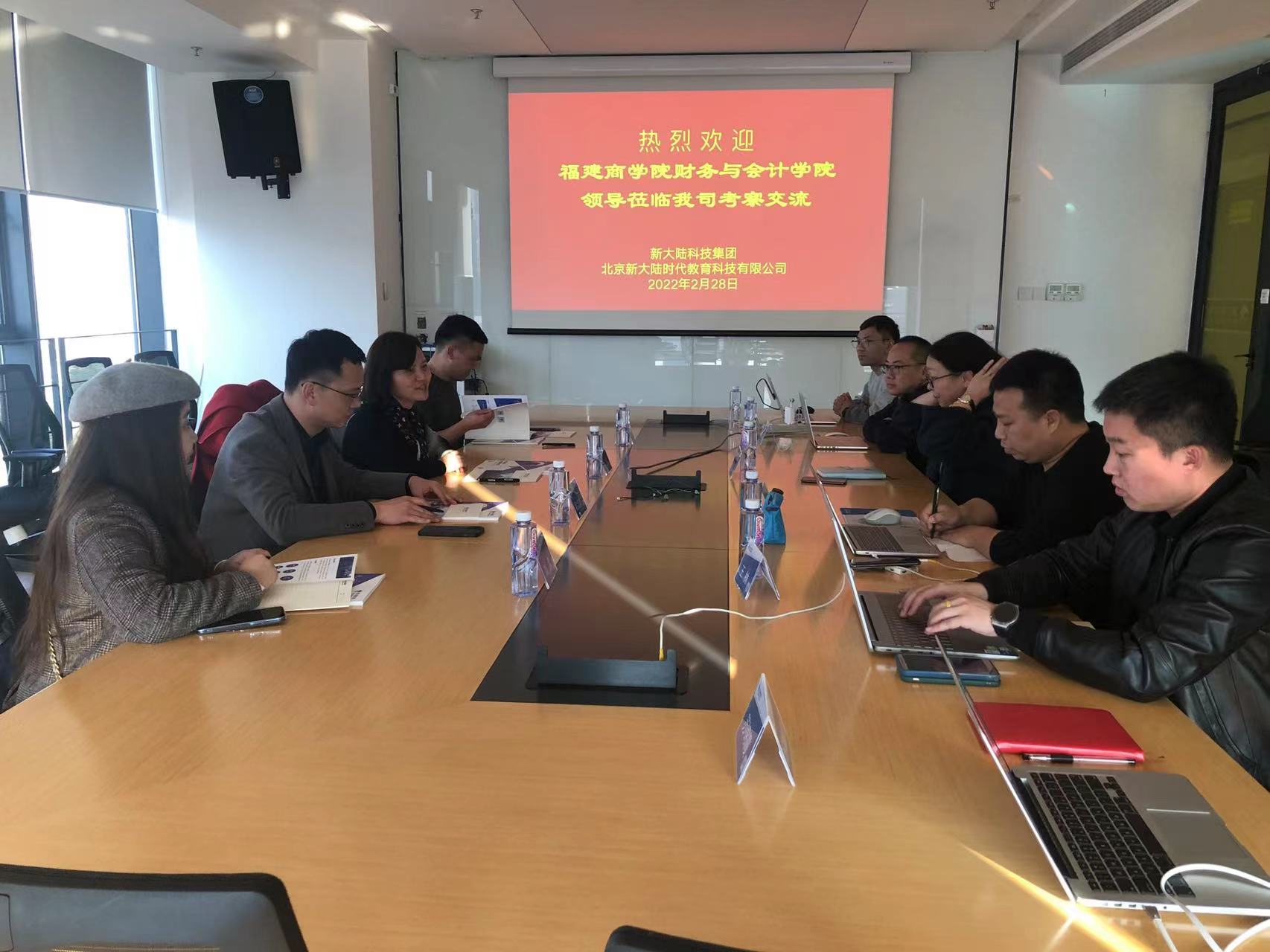新大陆科技集团教育公司副总经理邓立陪同财务与会计学院一行人参观了新大陆公共实训基地、科技成果展示厅。在座谈交流中,双方围绕“数字商科”主题,结合财务与会计学院的学科建设特点,在学生专业技能和综合素质培养、专业和课程设置、科研和学科发展、“一对一”设立新型产业学院等方面进行探讨,并就进一步加强校企合作、开展学生实习就业等工作进行交流,积极探索校企共同发展的长效机制,力争拓宽校企合作的深度和广度,互利共赢共谋发展。