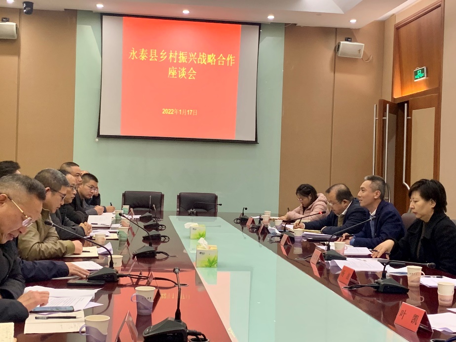 为进一步推动永利官网“海丝”会展现代产业学院落地,充分发挥产业学院服务区域经济发展的职能,1月17日,传媒与会展学院“海丝”会展现代产业学院调研组一行受邀前往永泰县政府参加乡村振兴战略合作座谈会,探讨在永泰县建设产教融合基地相关事宜。省农业农村厅农垦与南亚中心主任雷容华、省农业农村厅农经处主任陈志宏、永泰县副县长刘峰松、永泰县农业农村局局长黄玉义及有关部门代表参加本次活动。